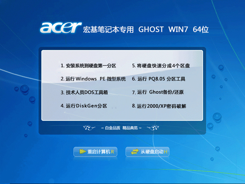 GHOST WIN7 SP1 64位宏基笔记本专用系统采用Win7 x64旗舰版Sp1制作而成,而且是在断网的情况下制作的,保证系统安全无毒。该系统自动关闭系统还原和关闭自动更新,并屏蔽许多浏览网页时会自动弹出的IE插件及禁用一些服。