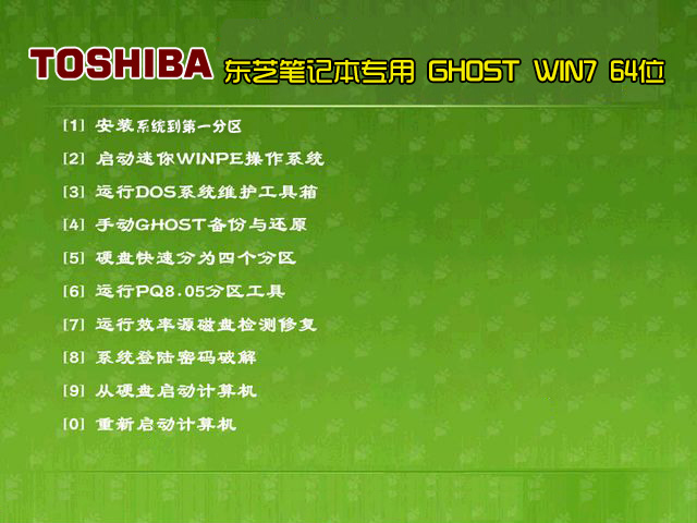 Ghost Win7 sp1 64位东芝笔记本专用系统采用Ghost Win7 SP1 x64 旗舰版制作,并通过微软认证。该系统系统具有安全、稳定、快速等特点,并集成常见的硬件驱动和装机软件,采用智能识别以及预解压技术。