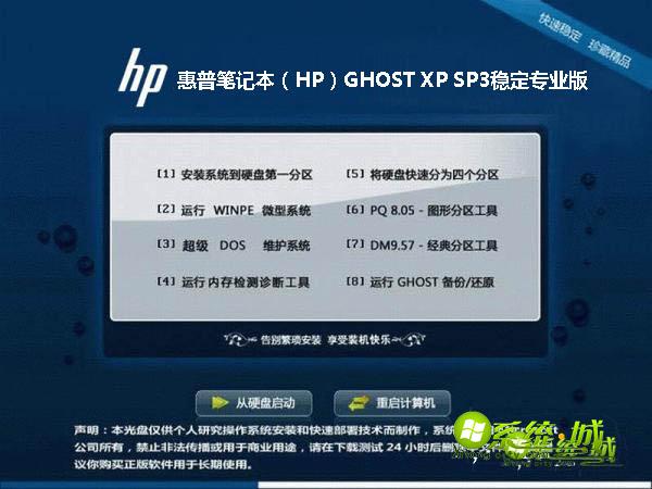 惠普笔记本(HP)GHOST XP SP3稳定旗舰版