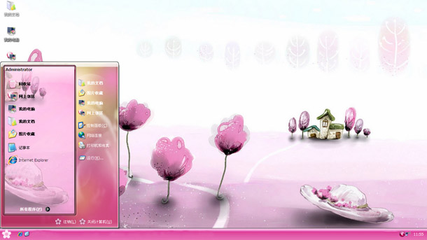 粉色卡通田园美景xp系统电脑主题下载